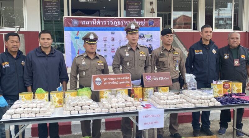 สืบเนื่องจาก ชุดปราบปรามยาเสพติดสภ.หาดใหญ่หรือชุดตะวันร่วมกับชุดช้างศึกสองเลตชด.437ตชด.43 ภายใต้การสั่งการของ พ.ต.อ.มาชา แก้วทอง ผกก.สภ.หาดใหญ่ . พ.ต.อ.พิมลรัตน์ ธรรมมาธิปดิ์ ผกก.ตชด.43 พ.ต.ท.ชนาวิน รัตนาวิน รอง ผกก.สส.สภ.หาดใหญ่ รวบเอเย่นต์ยาบ้ารายใหญ่ในอ.หาดใหญ่ยึดยาได้กว่า4แสนเม็ดมูลค่ากว่า12ล้านบาทส่งมาทางพัสดุจากจ.เชียงราย ใช้วิธีบรรจุไว้ในอาหารกระป๋องพบประวัติเคยถูกจับหลายครั้งทั้งคนส่งและคนรับ