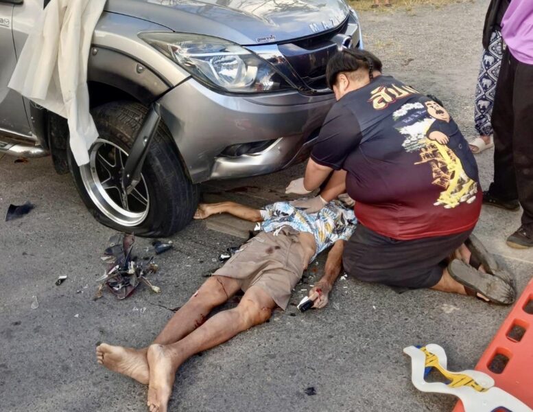 สลดตาวัย 83 ปี จะเลี้ยวจอดรถเพื่อจะเดินไปซื้อของในตลาดนัด ถูกรถกระบะวิ่งสวนทางเสยเข้าเต็มแรงลากไถลกว่า 20 เมตร เสียชีวิตคาที่