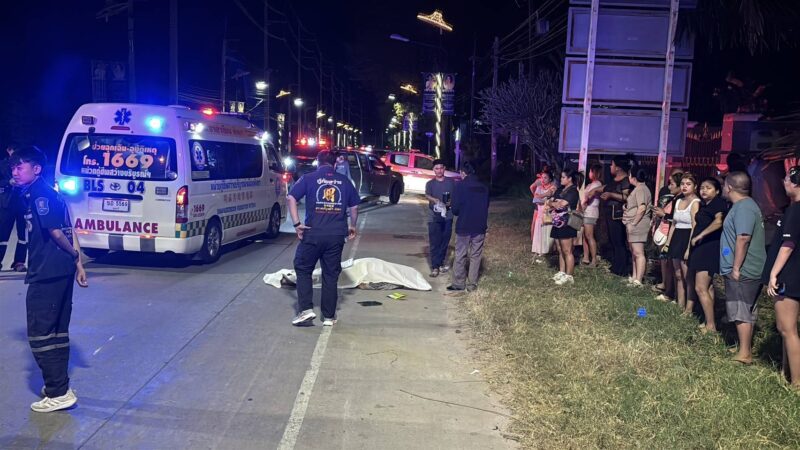 เมื่อเวลา 01.10 น. วันที่ 18 ธันวาคม 2568 ร.ต.อ.หญิง สิริยาภรณ์ คงเพชรศักดิ์ รอง สว.(สอบสวน) สภ.หนองปรือ ได้รับแจ้งมีอุบัติเหตุรถจักรยานยนต์เสียหลักพุ่งชนเทรลเลอร์ มีผู้เสียชีวิต เหตุเกิดบนถนนเลียบขอบอ่างเก็บน้ำมาบประชัน บริเวณวัดเขาโพธิ์ทอง ต.โป่ง อ.บางละมุง จ.ชลบุรี หลังรับแจ้งจึงประสานกำลัง เจ้าหน้าที่อาสาสมัครกู้ภัยสว่างบริบูรณ์ธรรมสถานเมืองพัทยารีบไปตรวจสอบที่เกิดเหตุ พบรถจักรยานยนต์ ยามาฮ่า แอโรซ์ สีดำ ทะเบียน 4 กศ 1933 ชลบุรี ล้มคว่ำได้รับความเสียหายอยู่กลางถนน ห่างออกไปประมาณ 10 เมตร พบร่างผู้เสียชีวิตเป็น ชายชาวต่างชาติ สัญชาติฮอลแลนด์ อายุประมาณ 50-55 ปี รูปร่างท้วม สวมเสื้อกันหนาวสีขาวคาดดำ กางเกงขาสั้นสีดำ เจ้าหน้าที่กู้ภัยฯ ปั๊มหัวใจเพื่อยื้อชีวิต แต่ผู้ได้รับบาดเจ็บทนพิษบาดแผลไม่ไหวเสียชีวิตในเวลาต่อมา ก่อนที่เจ้าหน้าที่จะใช้ผ้าขาวคลุมร่าง พร้อมกันพื้นที่ไม่ให้ผู้ไม่เกี่ยวข้องเข้าใกล้ ตรวจสอบยังพบรถกระบะจอดอยู่ข้างทาง โดยมีชุดลากพ่วงด้านท้าย ที่ยางล้อหลังของตัวพ่วงท้าย มีร่องรอยถูกเฉี่ยวชนจนยางแตก คาดว่าเป็นจุดที่รถจักรยานยนต์พุ่งชน