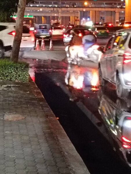 ชาวบ้านสุดอัดอั้น น้ำเสียเหม็นคล้ายส้วมนองถนนหน้าห้างดังพระราม 2 นานหลายเดือน ไร้เงาหน่วยงานแก้ไข