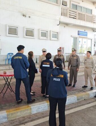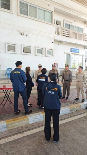 ว่า ผู้การพร้อมด้วยคณะผู้บริหารจากหน่วยงานที่เกี่ยวข้องลงพื้นที่ตรวจสอบการดำเนินงานณด่านศุลกากรมุกดาหาร