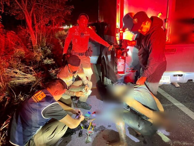 วิ่งจนป่าราบแต่ไม่รอด! ตำรวจทางหลวงล็อกตัวคนขับกระบะตู้ทึบ ขน 25 แรงงานเถื่อน ทิ้งรถหนีซ่อนเพิงสังกะสี