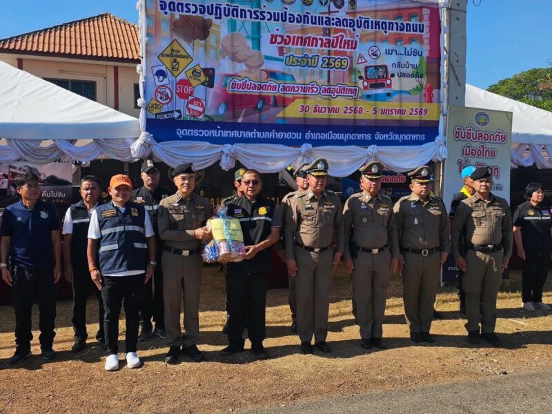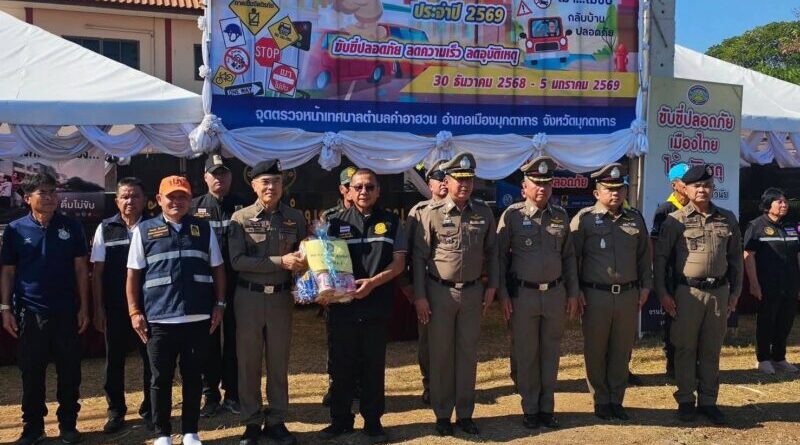 พล.ต.ต.พิษณุ อุณหเสรี รอง ผบช.ภ.4 เดินทางมาตรวจเยี่ยม จุดตรวจป้องกันและลดอุบัติเหตุทางถนน ช่วงปีใหม่ 2569 บริเวณหน้าสำนักงานเทศบาลตำบลคำอาฮวน โดยมี พล.ต.ต.ไพโรจน์ ไทยพุทรา ผบก.ภ.จว.มุกดาหาร พร้อมคณะผู้บังคับบัญชา ข้าราชการตำรวจ เจ้าหน้าที่ฝ่ายปกครอง จิตอาสา เจ้าหน้าที่สาธารณสุข และผู้นำชุมชน ให้การต้อนรับ