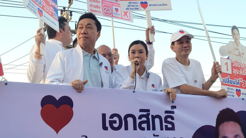 อาร์ท เอกสิทธิ์ คุณานันทกุล หัวหน้าพรรคปวงชนไทย ลงพื้นที่ตลาดปากน้ำ–ท้ายบ้าน ช่วย “วา” วชิราภรณ์ ผู้สมัคร สส.เขต 1 สมุทรปราการ เบอร์ 1 หาเสียง พบปะประชาชน รับฟังปัญหาเศรษฐกิจปากท้อง พร้อมประกาศเดินหน้าแก้ปัญหาแรงงานนอกระบบ ผู้สูงอายุ และปราบสแกมเมอร์อย่างจริงจัง