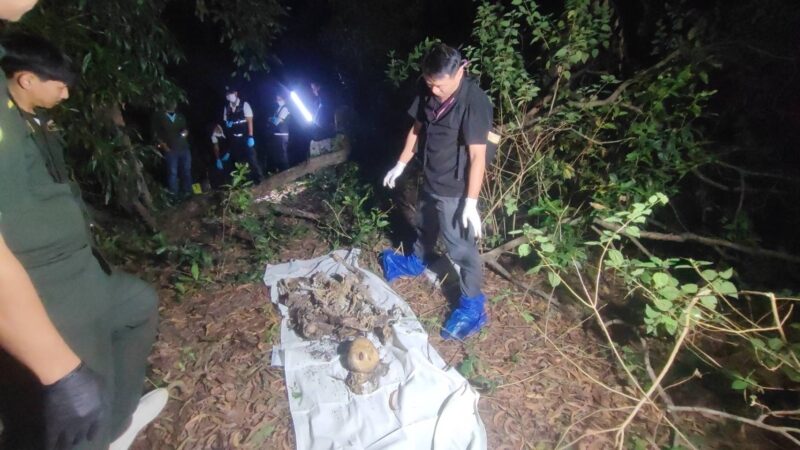 ปทุมธานี – หนุ่มผงะพบโครงกระดูกปริศนาในป่าสวมเสื้อคลุมHarley Davidson
