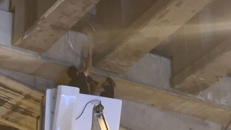 กู้ภัยใช้รถกระเช้าช่วยแมวส้มติดตอม่อสะพานสูงกว่า 10 เมตร คาดตกใจเสียงพลุปีใหม่