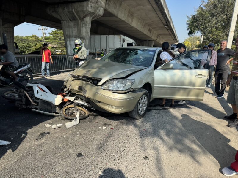 เมื่อเวลา 15.00 น. วันที่ 12 มกราคม 2569 อาสาสมัครมูลนิธิร่วมกตัญญูรับแจ้งอุบัติเหตุหมู่ รถยนต์เก๋งพุ่งชนรถจักรยานยนต์ 2 คัน ก่อนอัดท้ายรถพ่วง มีผู้ได้รับบาดเจ็บหลายราย เหตุเกิดบริเวณสะพานข้ามแยกคลอง 13 ธัญบุรี ต.บึงน้ำรักษ์ อ.ธัญบุรี จ.ปทุมธานี จึงรุดไปตรวจสอบและให้ความช่วยเหลือ