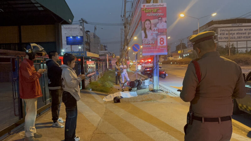 ที่เกิดเหตุพบร่าง นางสาว สมัชญามินย์ เลิศณพิช อายุ 28 ปี นอนเสียชีวิตอยู่บนฟุตบาทข้างทาง ใกล้กันที่โคนเสาไฟฟ้าข้างทางพบ รถจักรยานยนต์ ยี่ห้อ ฮอนด้า คลิก สีดำ-แดง ทะเบียน 1 กด 4474 ชลบุรี อยู่ในสภาพด้านหน้าพังยับเยิน คาเสาไฟฟ้า โดยมีเศษชิ้นส่วนแตกกระจายเกลื่อนพื้น เจ้าหน้าที่จึงบันทึกภาพและทำแผนที่ที่เกิดเหตุเอาไว้เป็นหลักฐาน จากนั้นมอบร่างผู้เสียชีวิตส่งไปชันสูตรยังนิติเวชสถาบันรามาธิบดีจักรีนฤบดินทร์ ขณะที่เกิดเหตุจากการสอบสวนไม่พบผู้ใดเห็นเหตุการณ์ดังกล่าว