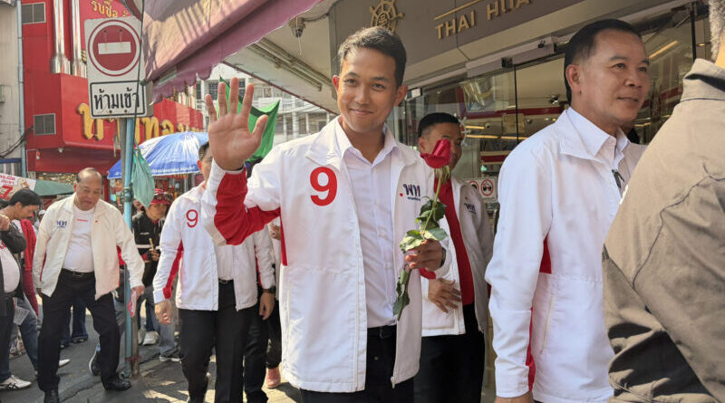 จุลพันธ์ อมรวิวัฒน์ หัวหน้าพรรคเพื่อไทย พาทีมผู้สมัคร สส.เขตสมุทรปราการลงพื้นที่ขอคะแนนชาวปากน้ำ