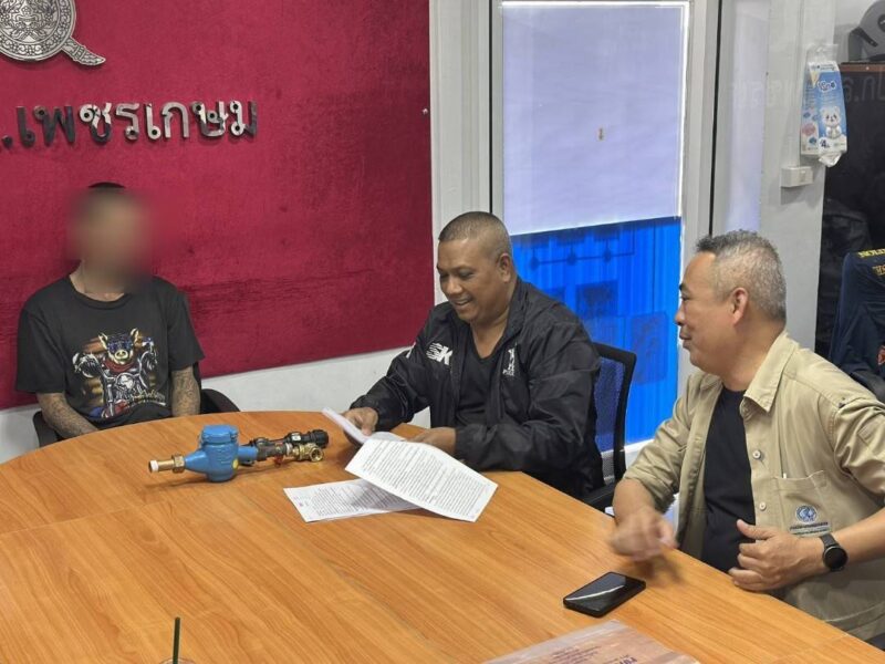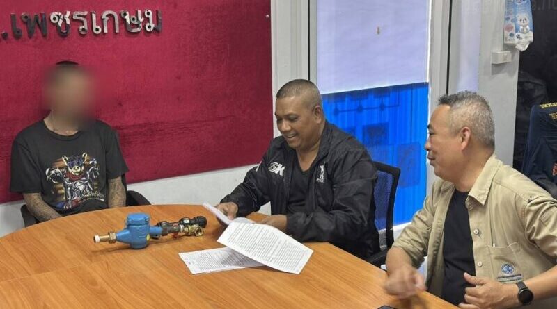 ช่วงบ่าย วันที่ 14 ม.ค. พ.ต.อ.ปราโมทย์ จันทร์บุญแก้ว ผกก.สน.เพชรเกษม พร้อม พ.ต.ท.วรงค์กรณ์ ขจรบุญญาวัฒน์ รอง ผกก.สส.สน.เพชรเกษม และ พ.ต.ท.ธวัชชัย ทิพย์วงษ์ สว.สส.สน.เพชรเกษม นำกำลังจับกุมตัว นายอภิรักษ์ หรือรถ เจริญสัตย์ อายุ 48 ปี ชาว จ.สุโขทัย พร้อมของกลาง มิเตอร์น้ำ สีฟ้า ยี่ห้อ ATACO หมายเลขเครื่อง D 1020213966 จำนวน 1 อัน ประตูน้ำ ทองเหลือง จำนวน 1 อัน และ อุปกรณ์ประกอบมิเตอร์ (ข้อต่อPB) จำนวน 1 อัน โดยจับกุมตัวได้ที่ตึกร้าง เชิงสะพานท่าเกษตร แขวงบางแค เขตบางแค กทม.