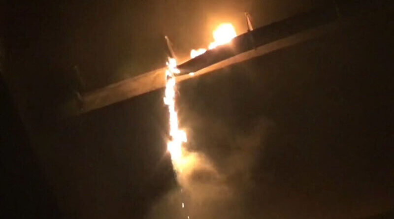 ที่เกิดเหตุพบเพลิงลุกไหม้จากบริเวณฐานตอม่อสะพาน ก่อนจะลุกลามขึ้นไปติดท่อยางพีอี (PE) สำหรับระบายน้ำของโครงสร้างสะพาน ทำให้เกิดเปลวไฟลุกไหม้เป็นแนวยาวในระดับเดียวกับเสาตอม่อ สร้างความแตกตื่นให้กับประชาชนและผู้ใช้เส้นทางเป็นอย่างมาก เจ้าหน้าที่ดับเพลิงพยายามฉีดน้ำจากด้านล่าง แต่ไม่สามารถส่งน้ำขึ้นไปถึงจุดเพลิงไหม้บริเวณใต้คานสะพาน ซึ่งมีความสูงจากพื้นดินกว่า 50 เมตร จึงต้องประสานรถดับเพลิงชนิดกระเช้าเข้าช่วยเหลือ พร้อมกันนี้เจ้าหน้าที่ได้ปิดการจราจรบนสะพาน 1 ช่องทาง เพื่อให้สามารถฉีดน้ำจากด้านบนลงไปยังจุดเกิดเหตุได้ ต่อมารถดับเพลิงแบบกระเช้าเดินทางมาถึง เจ้าหน้าที่ได้กางขากระเช้าและยกกระเช้าพานักดับเพลิงขึ้นฉีดน้ำควบคุมเพลิงอย่างต่อเนื่อง ใช้เวลากว่า 1 ชั่วโมง เพลิงจึงสงบ จากการตรวจสอบเบื้องต้น พบว่าท่อยางพีอีสำหรับระบายน้ำ ขนาดเส้นผ่านศูนย์กลางประมาณ 30 เซนติเมตร ได้รับความเสียหายตลอดแนวความสูงกว่า 50 เมตร อย่างไรก็ตาม ไม่พบความเสียหายต่อโครงสร้างหลักของสะพานแต่อย่างใด