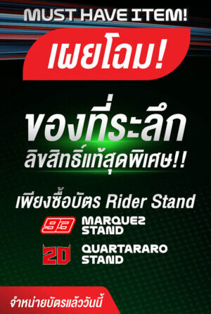 เปิดตัวไอเทมที่แฟนความเร็วต้องมี (Must Have Item) สำหรับผู้ที่จองบัตรอัฒจันทร์นักบิด (Rider Stand) ซึ่งในปีนี้ชูความโดดเด่นของ 2 ซูเปอร์สตาร์