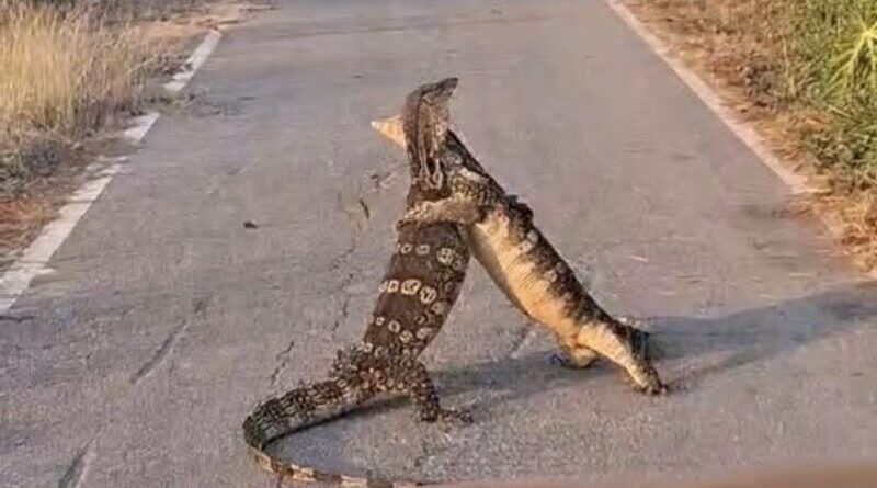 วันที่ 19 ม.ค. 69 คลิปตัวเงินตัวทองขนาดใหญ่ ที่กำลังกอดรัดฟัดเหวี่ยงกันอยู่ที่กลางถนน ริมคลองชลประทาน ตำบลอินทประมูล อำเภอโพธิ์ทอง จังหวัดอ่างทอง ซึ่งถ่ายภาพโดย นางสาว รฐา ตะเพียนทอง เจ้าหน้าที่สมาคมกู้ภัยจังหวัดอ่างทอง ที่นั่งรถผ่านไปเห็น จึงได้ถ่ายคลิปไว้และแชร์ลงในสื่อออนไลน์ ดดยเล่าให้ฟังว่า ตนเองไม่รู้ว่าเจ้าตัวเงินตัวทองทั้ง 2 ตัวนั้น เขารักกันหรือว่าต่อสู้แย่งชิงพื้นที่กันหาอาหารกัน ก็เพิ่งเห็นกับตาเป็นครั้งแรก จึงได้ถ่ายคลิปเอาไว้ ก่อนที่ทั้ง 2 ตัว จะตกใจรีบแยกย้ายหนีกันลงไปในน้ำ