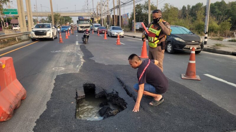 สมุทรปราการ โผล่อีก ถนนทรุดเป็นโพรงใหญ่ ใกล้ตากอากาศบางปู
