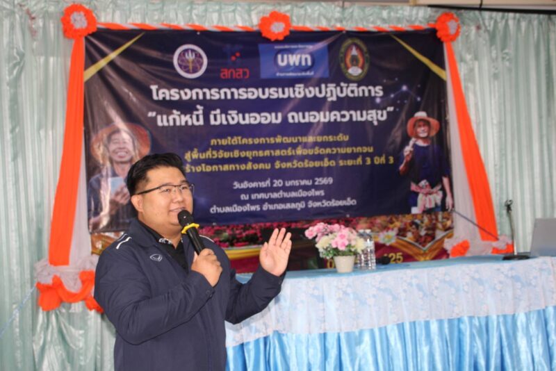 มหาวิทยาลัยราชภัฏร้อยเอ็ด เดินหน้าแก้หนี้อย่างเป็นระบบ เปิดอบรม “เมืองไพร แก้หนี้ มีเงินออม ถนอมความสุข” เสริมวินัยการเงิน 80 ครัวเรือน