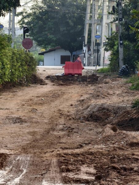 ชาวบ้านในซอย 8 เปิดเผยว่า ผู้รับเหมา เข้ามาทำการรื้อถนนเก่าเมื่อปีที่แล้ว ปี 2568 ตอนนี้ก็ผ่านมาหลายเดือน ตนมองว่า ผู้รับเหมารายนี้ไม่ใช่มืออาชีพ ในการทำงาน ไม่มีการวางแผนที่ดีให้ชาวบ้านเตรียมตัว รวมถึงอุปกรณ์เครื่องจักรหนักก็น้อย ตอนนี้ชาวบ้านต้องปิดบ้าน ปิดประตู – หน้าต่าง เพราะฝุ่นจากถนนปลิวเข้าบ้านเรือน ตอนนี้ก็เริ่มมีคนเจ็บป่วยชาวบ้านเริ่มเจ็บป่วยระบบทางเดินหายใจจากฝุ่นละอองกันแล้ว ตอนนี้ยิ่งเดือดร้อนหนักมากถึงกับไม่มีน้ำประปาใช้แล้ว ผู้รับเหมาดันมาทำท่อน้ำประปาแตกอีก