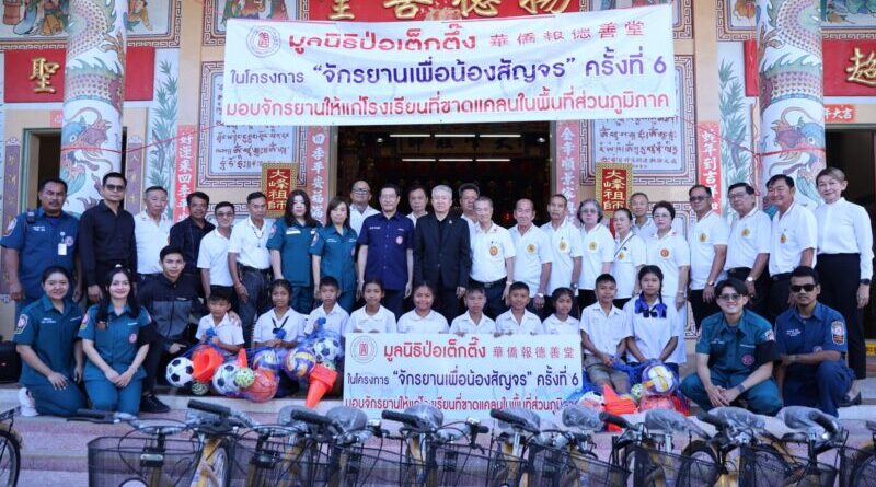 มูลนิธิป่อเต็กตึ๊ง หนุนการศึกษาเยาวชน 100 โรงเรียนในพื้นที่ชนบทภาคกลาง-ใต้ รวม 20 จังหวัด มอบจักรยาน-อุปกรณ์กีฬา ในโครงการ “จักรยานเพื่อน้องสัญจร” ครั้งที่ 6 รวมมูลค่ากว่า 2.85 ล้านบาท เน้นสร้างชีวิตอย่างยั่งยืน