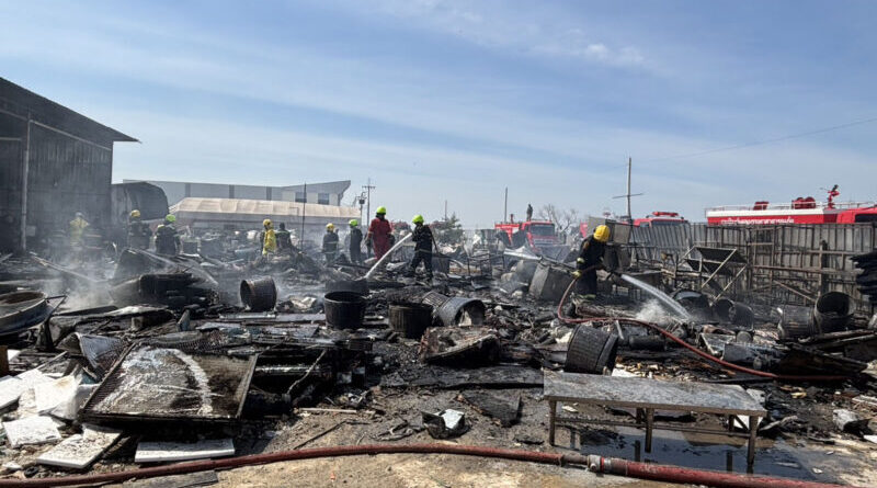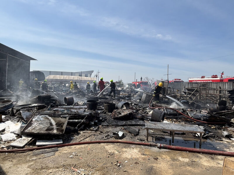 เพลิงไหม้ร้านรับซื้อของเก่าย่านบางพลี ก่อนเกิดระเบิดขณะเจ้าหน้าที่ฉีดน้ำ เจ็บ 1 นาย