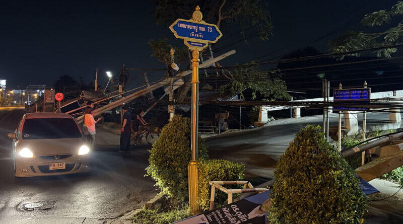 งานเข้าคนขับรถพ่วงเลี้ยวเข้าซอยเกี่ยวสายเคเบิ้ลดึงเสาไฟฟ้าล้มระเนระนาดกว่า 70 ต้น ยาวเกือบ 2 กิโลเมตร
