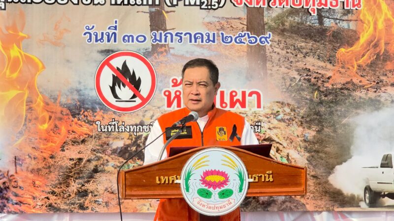 เมื่อเวลา 09.00 น. วันที่ 30 มกราคม 2569 จังหวัดปทุมธานีผนึกกำลังหน่วยงานท้องถิ่น จัดกิจกรรม “Kick Off การแก้ไขปัญหาฝุ่นละอองขนาดเล็ก (PM2.5) จังหวัดปทุมธานี” ที่ ลานจอดรถสวนเทพปทุม อ.เมืองปทุมธานี จ.ปทุมธานี โดยมีนายเอกวิทย์ มีเพียร ผู้ว่าราชการจังหวัดปทุมธานี เป็นประธาน พร้อมด้วย พลตำรวจโท คำรณวิทย์ ธูปกระจ่าง นายกองค์การบริหารส่วนจังหวัดปทุมธานี (นายกแจ๊ส) นำทีมร่วมขับเคลื่อนมาตรการเชิงรุกอย่างเต็มพิกัด