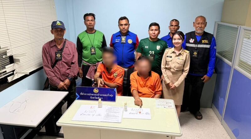 พังงา-ฝ่ายปกครองอำเภอตะกั่วทุ่งเข้ม ลาดตระเวนบ้านเขาเปาะ รวบ 2 ผู้ต้องหา พร้อมยาบ้า 24 เม็ด
