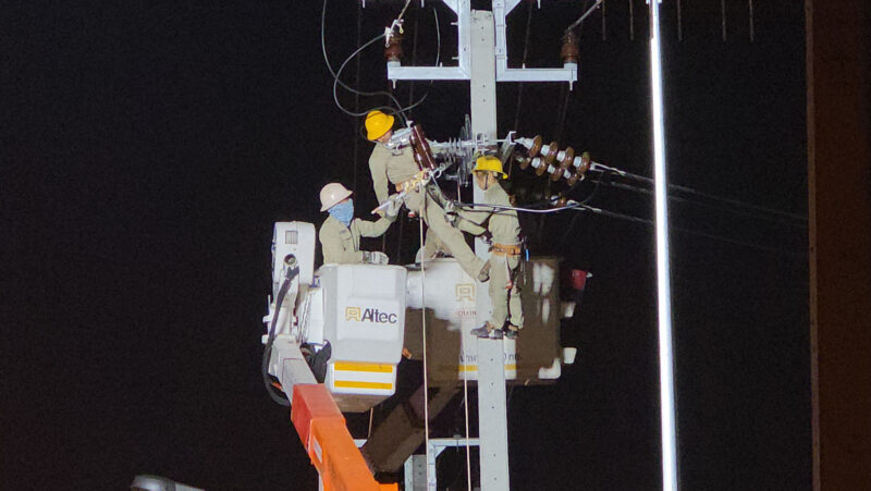 นายพสุธร รัตนคำ วิศวกรไฟฟ้า การไฟฟ้านครหลวง กล่าวว่า จากเหตุการณ์เสาไฟฟ้าล้มทั้งหมด 70 ต้น วันนี้การไฟฟ้านครหลวงสมุทรปราการ และพื้นที่ใกล้เคียง ได้ร่วมกันปักเสาภาพสายตามแนวใหม่ เพื่อทดแทนเสาที่หักไป ตอนนี้ปักได้ทั้งหมด 70 ต้น และพาดสายได้ครบแล้ว อยู่ในช่วงตรวจสอบระบบจ่ายไฟ จะมีบางพื้นที่ที่สามารถจ่ายไฟได้แล้ว เหลือแค่ทางหมู่บ้านเอื้ออาทรเคหะบางปู ที่เหลือแค่การสับจ่ายไฟ ถ้าสับจ่ายไฟเสร็จก็ถือว่าเสร็จสมบูรณ์ร้อยเปอร์เซ็นต์ และจะเหลือแค่การเคลียร์พื้นที่