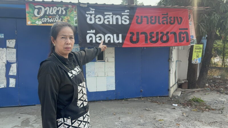 อ่างทอง แม่ค้าร้านชำวัย56ปีตัวแทนหมู่บ้านขึ้นป้ายข้อความซื้อสิทธิ์ขายเสียงคือคนขายชาติติดไว้บริเวณหน้าบ้าน ริมถนนอ่างทอง – อยุธยา