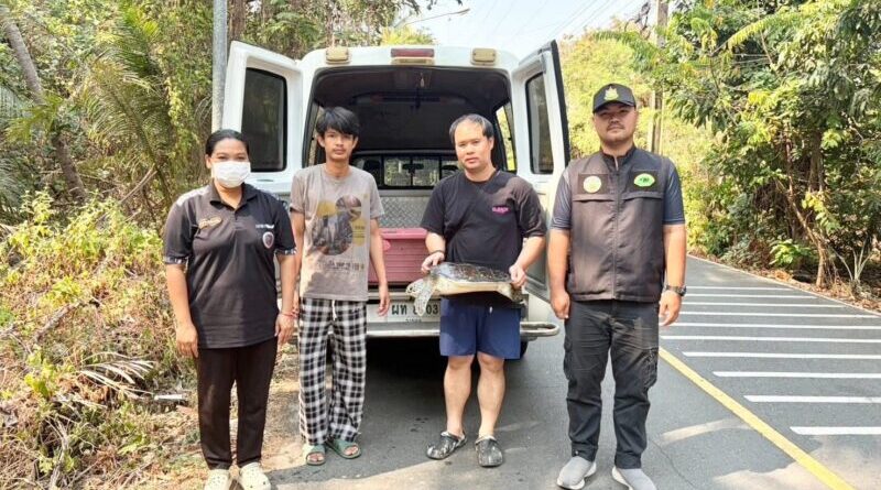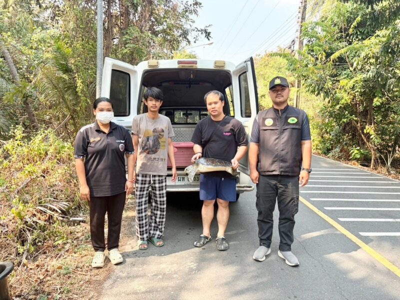 ตราด – อ.คลองใหญ่ จ.ตราด พบเต่าตนุ รอดตายโดยปาฏิหาริย์ไกล้จะเกยหาด ชาวเรือประมงพื้นบ้านเห็นช่วยไว้ทัน