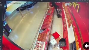 กล้องวงจรปิดสามารถบันทึกภาพคนร้ายเป็นชายรูปร่างเล็ก สวมเสื้อผ้าสีดำ และสวมไอ้โม่งปิดบังใบหน้า เดินพุ่งตรงเข้าไปภายในร้านโดยไม่แสดงท่าทีลังเล ก่อนชักอาวุธปืนขึ้นมาข่มขู่พนักงานและลูกค้าที่อยู่ภายในร้าน จากนั้นใช้ค้อนทุบกระจกตู้โชว์ และกระโดดข้ามเคาน์เตอร์เข้าไปกวาดสร้อยคอทองคำไปได้ประมาณ 3–4 ถาด แล้วอาศัยความชำนาญเส้นทางหลบหนีออกจากห้างไปอย่างรวดเร็ว