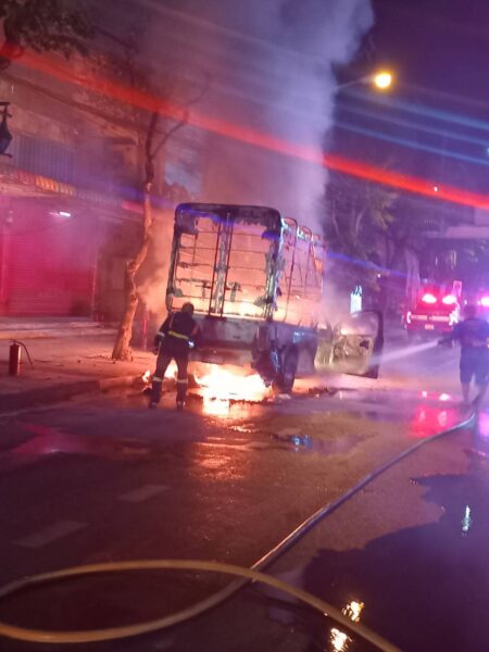 ระทึกกลางดึก หนุ่มขับรถส่งสินค้า ไฟไหม้รถกระบะวอดทั้งคัน รอดหวุดหวิด