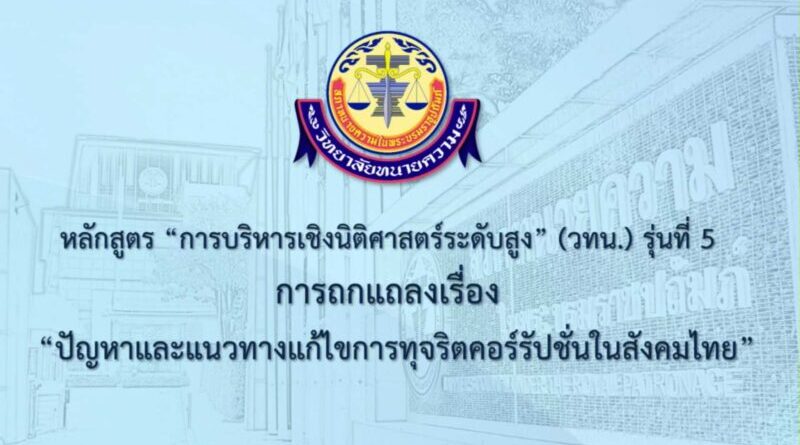 วทน. รุ่น 5 เปิดเวทีถกแถลง “ต้านคอร์รัปชัน” สะท้อนโจทย์ใหญ่สังคมไทย ท่ามกลางดัชนี CPI น่ากังวล “รศ.ณัฐพงศ์ โปษกะบุตร” ชี้ต้องเร่งปฏิรูปเชิงโครงสร้าง–ปลูกวัฒนธรรมไม่ทนต่อการโกง