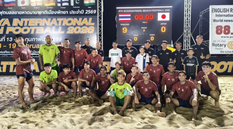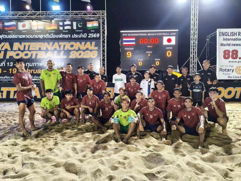 ศึก PATTAYA INTERNATIONAL BEACH FOOTBALL CUP 2026 🏖️⚽ ที่สนามฟุตบอลชายหาดจอมเทียน เมืองพัทยา ทีมฟุตบอลชายหาดไทย ซึ่งมีนักเตะทีมชาติหลายรายลงเล่นเพื่อเรียกความฟิตก่อนมีโปรแกรมไปแข่งขันเอเชียนบีชเกมส์ ที่ประเทศจีน ช่วงเดือนเมษายน 2569