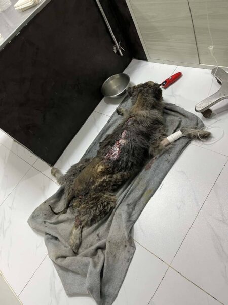 ต่อมานายสมชัยได้พาผู้สื่อข่าวไปที่คลินิคธัญชนกสัตวแพทย์เพื่อติดตามอาการเจ้ามอลลี่ เบื้องต้นสภาพร่างกายเจ้ามอลลี่ถูกไฟไหม้ระดับ 5 แบบรุนแรงไหม้กล้ามเนื้อและบาดแผลเริ่มเน่าซึ่งทางสัตวแพทย์เตรียมส่งไปรักษาต่อที่โรงพยาบาลสัตว์ของมหาวิทยาลัยสงขลานครินทร์ (มอ.) โดยต้องอยู่ห้องปลอดเชื้อและต้องใช้ระยะเวลาในการรักษาเป็นเดือน