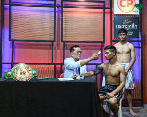 ขณะผลการชั่งคู่อื่นๆมีดังนี้ แววลูกรัก ร.ร.สุรินทร์มงคล พบ อรรถชัย ประเสริฐ์ศรีพิกัด118ปอนด์ , กุมารดอย เพชรยินดีอะคาเดมี่ พบ อั๊คบาร์ โมราดี้(อิหร่าน)พิกัด 117ปอนด์, วิษญ์สยาม ศิษย์ชาญสิงห์ พบ คริสโตเฟอร์ หว่อง(สหราชอาณาจักร) พิกัด112ปอนด์