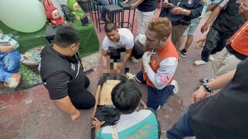 เมื่อเวลา 07.06 น.วันที่ 26 กุมภาพันธ์ 2569 ร.ต.อ.ชานันท์ เกษรบัว รอง สว.สอบสวน สภ.เมืองพัทยา รับแจ้งเหตุทะเลาะวิวาท มีบุคคลถูกอาวุธมีดทำร้ายได้รับบาดเจ็บสาหัส เหตุเกิดริมถนนพัทยาใต้ หน้าร้านอาหารแห่งหนึ่งภายในซอยกอไผ่ เมืองพัทยา ต.หนองปรือ อ.บางละมุง จ.ชลบุรี หลังรับแจ้งจึงรายงานผู้บังคับบัญชา พ.ต.อ.เอนก สระทองอยู่ ผกก.สภ.เมืองพัทยา พร้อมนำกำลังเจ้าหน้าที่ตำรวจชุดสืบสวน เจ้าหน้าที่อาสาสมัครกู้ภัยสว่างบริบูรณ์ธรรมสถานเมืองพัทยา รีบไปตรวจสอบ