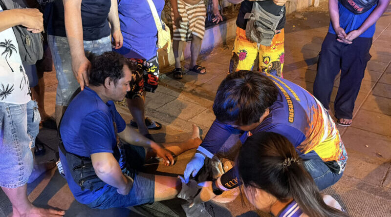 แจ้งเหตุทำร้ายร่างกาย กู้ชีพ–กู้ภัยวิ่งกันวุ่น สุดท้ายหนุ่มกัมพูชาอ้างเหยียบกระเบื้องลื่นล้ม เข่าฉีกเลือดสาด