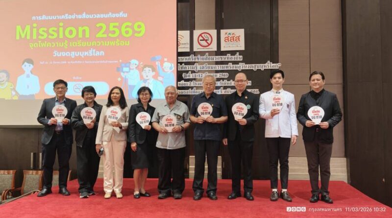 เมื่อวันที่ ๑๑ มีนาคม ณ ห้องประชุมคัทรียาโรงแรมรามาการ์เด้นท์ กรุงเทพฯ มูลนิธิณรงค์เพื่อการไม่สูบบุหรี่ ได้จัดสัมมนาเครือข่ายสื่อมวลชนท้องถิ่น “Mssion 2569 : จุดไฟความรู้ เตรียมความพร้อมสู่วันงดสูบบุหรี่โลก” ๓๑ พฤษภาคม โดยมีสื่อมวลชนทุกแขนง, ผู้นำท้องถิ่น ครู ฯลฯ เกือบร้อยคน กว่า ๔๐ จังหวัด ร่วมเป็นภาคีเครือข่ายและสัมมนา (สนับสนุนโดย สสส.)