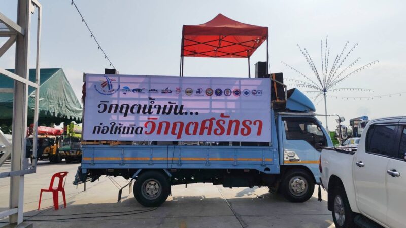 ชลบุรี – ขนส่งรวมตัวแหลมฉบัง จี้รัฐแก้น้ำมันแพง–ขาดแคลน ตั้งคำถามราคาหน้าคลัง–อ้างอิงสิงคโปร์