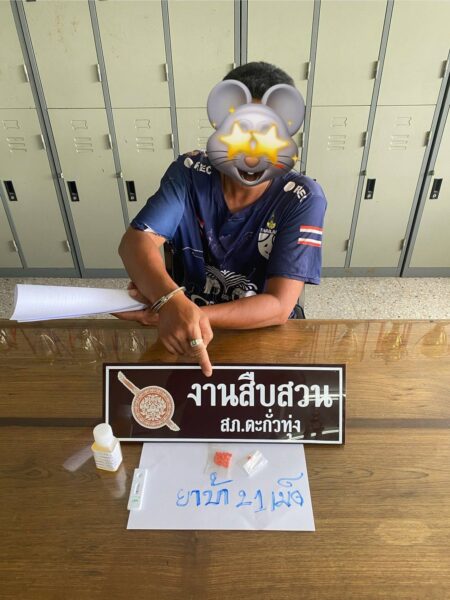 สืบสวนตะกั่วทุ่งร่วมกับผู้ใหญ่บ้านจับหนุ่มค้ายาบ้า พบของกลางกว่า 21 เม็ด