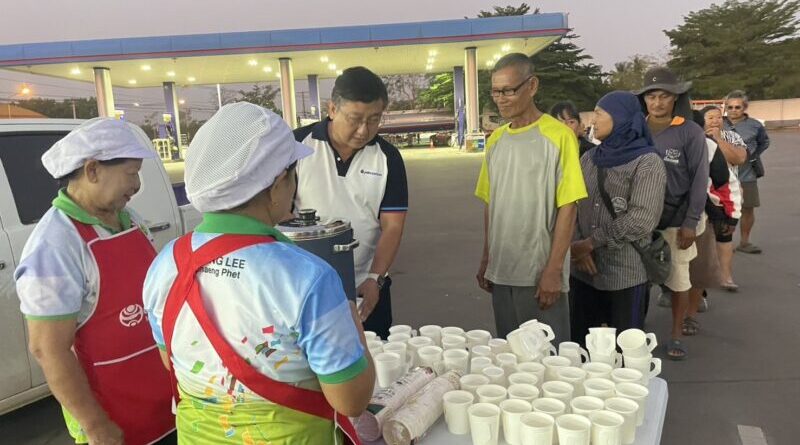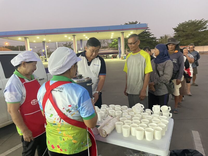 เจ้าของปั๊มน้ำมันกำแพงเพชรน้ำใจงาม แจกน้ำเต้าหู้คลายเหนื่อยลูกค้าต่อคิวตั้งแต่เช้ามืด ท่ามกลางสถานการณ์น้ำมันตึงตัว