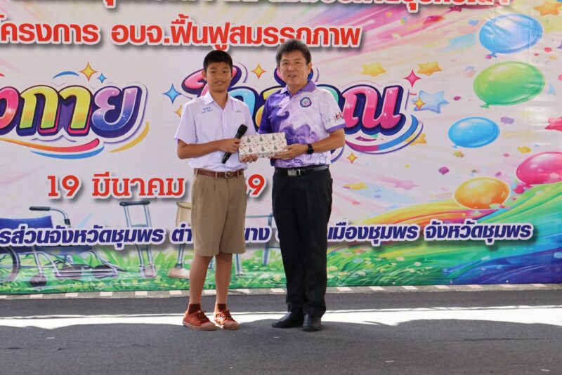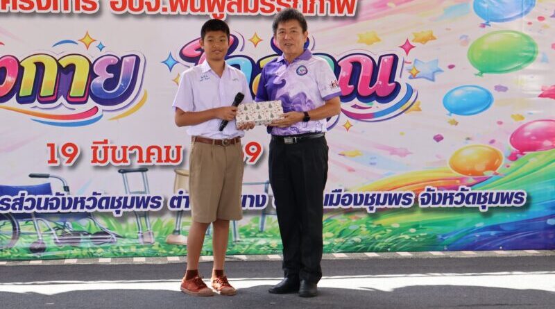 วันนี้ (19 มีนาคม 2569) เวลา 10.00 น. นายเธียรชัย ชูกิตติวิบูลย์ ผู้ว่าราชการจังหวัดชุมพร เป็นประธานในพิธีเปิดศูนย์ยืม – คืน กายอุปกรณ์ฯ และส่งมอบกายอุปกรณ์ฯ ตามโครงการ อบจ.ฟื้นฟูสมรรถภาพ เคียงกาย ใกล้คุณ พร้อมด้วย หัวหน้าส่วนราชการ ผู้บริหารองค์กรปกครองส่วนท้องถิ่น ประธานสภาองค์การบริหารส่วนจังหวัดชุมพร สมาชิกสภาองค์การบริหารส่วนจังหวัดชุมพร คณะกรรมการกองทุนฟื้นฟูสมรรถภาพจังหวัดชุมพร ผู้บริหารโรงพยาบาลส่งเสริมสุขภาพตำบล ข้าราชการ เจ้าหน้าที่ หน่วยงานที่เกี่ยวข้อง ผู้ปกครองของผู้มีสิทธิ์ได้รับการฟื้นฟูสมรรถภาพ และประชาชน เข้าร่วมโครงการฯ ณ ท่าเทียบเรือองค์การบริหารส่วนจังหวัดชุมพร ตำบลท่ายาง อำเภอเมืองชุมพร จังหวัดชุมพร