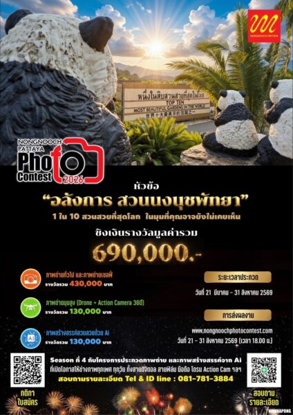 สวนนงนุชพัทยา เปิดเวทีประกวดภาพถ่าย “Nongnooch Photo Contest 2026” ครั้งที่ 4 ชวนช่างภาพทั่วประเทศร่วมถ่ายทอดความอลังการสวนนงนุชพัทยา สู่สายตาโลก