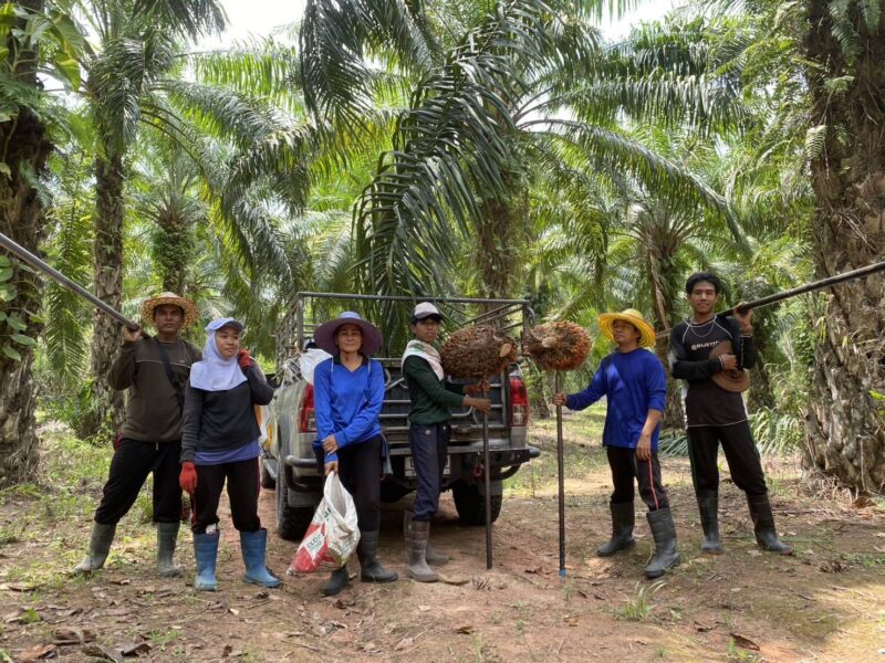 “ปกติทีมงานมี 6 คน ต้องใช้รถบรรทุกทั้งอุปกรณ์และแรงงานเข้าไปในสวน แบ่งหน้าที่ตั้งแต่เคียวทะลาย เก็บทาง เก็บลูก และขนขึ้นรถ แต่ช่วงหลังต้องหยุดงานบ่อย บางสัปดาห์หยุดถึง 3 วัน เพราะต้องไปรอคิวน้ำมัน ทำให้รายได้หายไปเฉลี่ยคนละประมาณ 500 บาทต่อวัน” นายกิจจา กล่าว