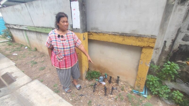 นางเบญจ ขันท่าจีน อายุ 61 ปี เจ้าของบ้านที่เกิดเหตุ ชี้ให้ดูจุดติดตั้งมิเตอร์น้ำหน้าบ้านที่เหลือเพียงท่อเปล่าๆ พร้อมเปิดเผยว่า เมื่อช่วงเช้ามืดที่ผ่านมาขณะตื่นมาทิ้งขยะ พบว่ามิเตอร์น้ำถูกลักไปจำนวน 2 ลูก ส่งผลให้ที่บ้านไม่มีน้ำใช้ตลอดทั้งวัน ต้องรอเจ้าหน้าที่การประปามาติดตั้งให้ใหม่ ซึ่งเหตุการณ์นี้ไม่ใช่ครั้งแรก เพราะเมื่อช่วงปลายปีที่ผ่านมาเคยโดนลักไปแล้วถึง 3 ลูก แต่ยังจับคนร้ายไม่ได้จนกระทั่งมาโดนก่อเหตุซ้ำอีก