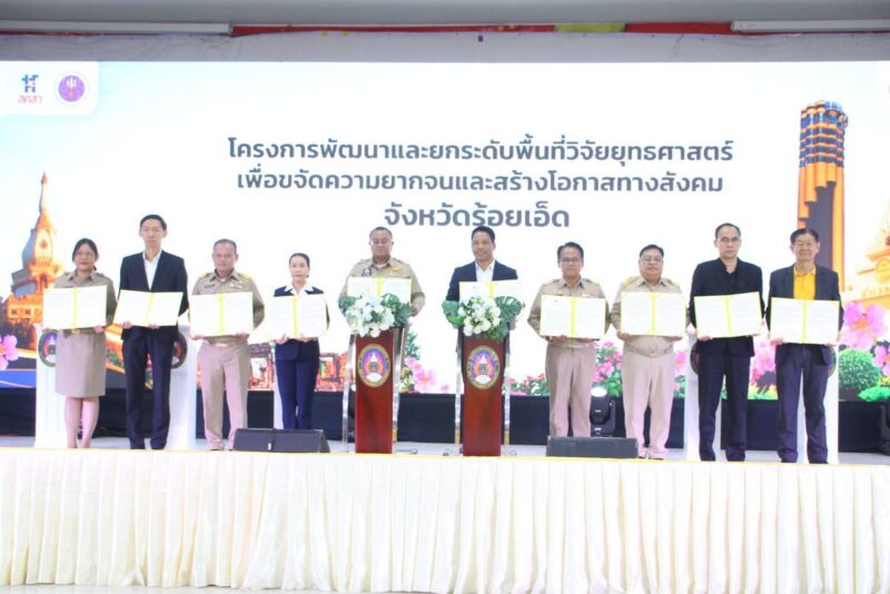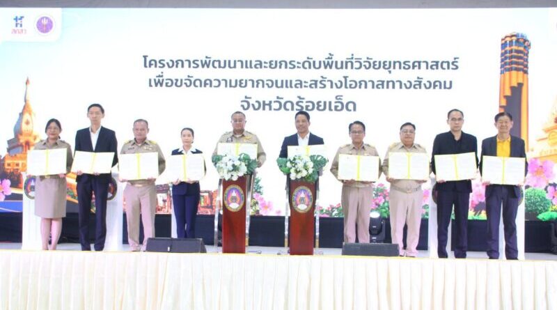 จังหวัดร้อยเอ็ด ร่วมกับมหาวิทยาลัยราชภัฏร้อยเอ็ด บพท.และภาคีเครือข่าย ขับเคลื่อน “สานพลังแก้จนเมืองเกินร้อย Season 3”เสริมสร้างความเข้มแข็งของชุมชนตามศาสตร์พระราชา ผสานองค์ความรู้ด้านวิจัยและนวัตกรรม เพื่อยกระดับคุณภาพชีวิตของประชาชนอย่างต่อเนื่อง