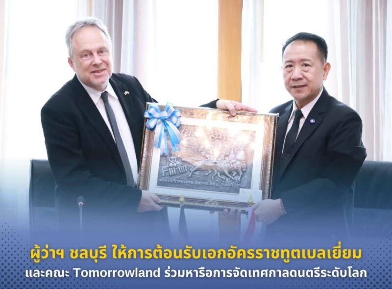 ผู้ว่าฯ ชลบุรี ให้การต้อนรับเอกอัครราชทูตเบลเยี่ยมและคณะ Tomorrowland หารือการจัดเทศกาลดนตรีระดับโลกในจังหวัดชลบุรี