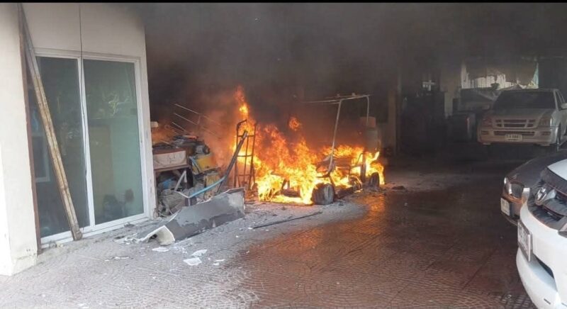 ระทึก ! ไฟไหม้รถกอล์ฟไฟฟ้าจอดชาร์จในโรงจอดรถภายในบ้าน
