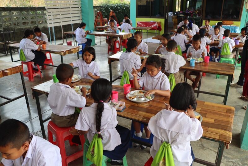 เมตตาธรรมนำสุข ครูบาโชคชัยจัดเลี้ยงอาหารนักเรียนส่งท้ายเทอม