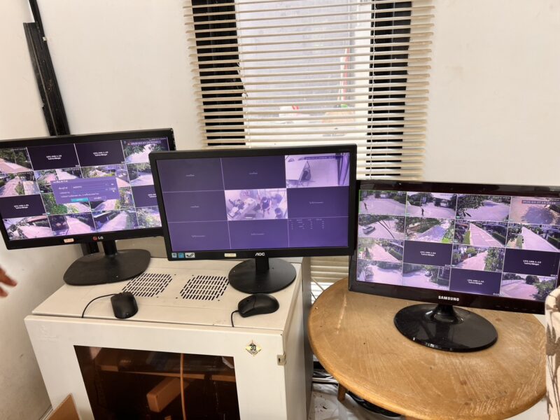 ๓. ระบบความปลอดภัยล้มเหลว (CCTV) ตรวจพบระบบมอนิเตอร์ในห้องนิติฯ มีสถานะ “จอดำ/ไม่มีสัญญาณ” ในหลายจุดสำคัญ (มีหลักฐานภาพถ่าย ๒๗ มี.ค. ๖๙) สวนทางกับประกาศแผนงานซ่อมแซม ทำให้ลูกบ้านเกิดความไม่มั่นใจในสวัสดิภาพ