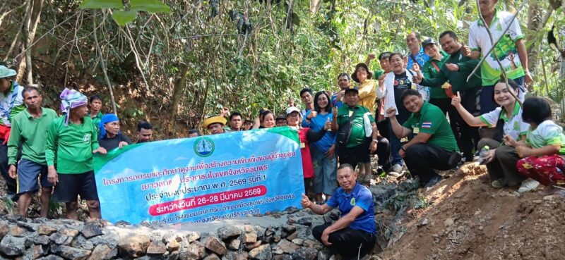 นางสาวพันธนีย์ เปิดเผยว่า ได้รวบรวมผู้นำชุมชน สมาชิกสภาเกษตรกร และประชาชนจาก อ.ท่าแซะ และ อ.เมืองชุมพร รวม 50 คน เข้าเรียนรู้วิธีการสร้างเครือข่ายบริหารจัดการน้ำในชุมชนจากวิทยากรโครงการชลประทานชุมพร เพื่อทำความเข้าใจระบบน้ำในระดับโครงสร้าง จากนั้นได้ลงพื้นที่จริง เดินทางไปยัง “ชุมชนควนไม้บ้อง” ต.วังอ่าง อ.ชะอวด จ.นครศรีธรรมราช ที่มีสภาพพื้นที่คล้ายกับพื้นที่ของรับร่อ เพื่อศึกษาโมเดลต้นแบบการบริหารจัดการน้ำโดยชุมชนที่ประสบความสำเร็จ จากการสร้าง “เครือข่ายคนรักษ์น้ำ” มีการสร้างฝ่ายขนาดเล็กในหมู่บ้านกว่า 100 ฝ่าย และผู้ที่เดินทางมาในครั้งนี้ทุกคนได้ร่วมกันฝึกสร้างฝายไว้ที่หมู่บ้านควนไม้บ้อง 1 แห่ง กว้าง 4 เมตร สูง 1 เมตร ใช้วัสดุช่วยกันเก็บหินในลำธารมาเรียงและใช้ทราย หิน ผสมปูนซีเมนต์เทเป็นชั้นขึ้นมา ซึ่งจะนำบทเรียนจากการสร้างฝายครั้งนี้ กลับมาประยุกต์ใช้ในพื้นที่ตำบลรับร่อและพื้นที่ใกล้เคียง เพื่อเปลี่ยนจากเมืองที่เคยแย่งชิงน้ำ ให้กลายเป็นชุมชนที่มีน้ำใช้อย่างเป็นระบบและเป็นธรรมในอนาคต โดย อบจ.ชุมพร พร้อมจะให้การ สนับสนุนการแก้ไขปัญหาน้ำอย่างเต็มที่